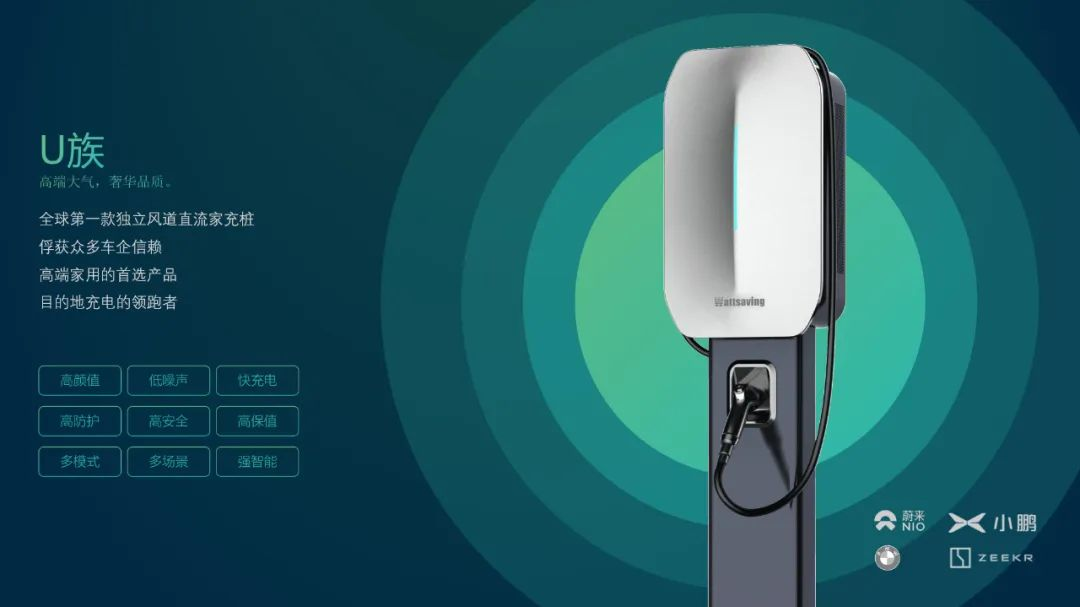 ,高端大氣,奢華品質(zhì),全球第一款獨(dú)立風(fēng)道直流家充樁,俘獲眾多車企信賴,高端家用的首選產(chǎn)品,目的地充電的領(lǐng)跑者;