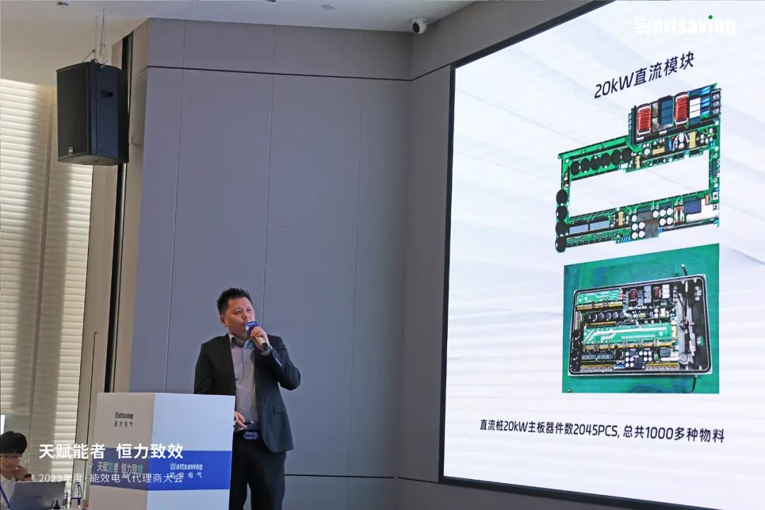 好的產(chǎn)品離不開研發(fā)的精心設(shè)計(jì),更離不開精益生產(chǎn),能效電氣副總經(jīng)理顏輝先生,為代理商展示了智能化管理的供應(yīng)鏈體系,擁有自動(dòng)化的工藝、完善的體系認(rèn)證、嚴(yán)格的產(chǎn)品質(zhì)量控制,承載蔚來、小鵬、寶馬、極氪、日產(chǎn)、吉利、集度、大運(yùn)等多家車企充電樁的定制開發(fā)。