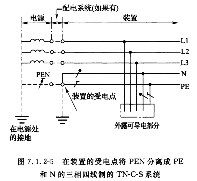 在全系統中,N的功能和PE的功能合并在一根導體中。裝置的PEN也可另外增設接地。