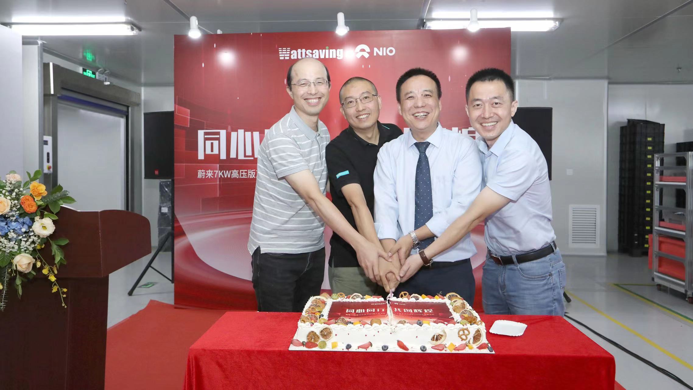 慶祝儀式上,能效電氣項(xiàng)目經(jīng)理郭龍先生、蔚來(lái)汽車項(xiàng)目經(jīng)理王小露女士、項(xiàng)目工業(yè)化代表曹光榮先生,對(duì)項(xiàng)目開(kāi)發(fā)過(guò)程中的點(diǎn)滴往事進(jìn)行了回顧和總結(jié)。項(xiàng)目立項(xiàng)后,雙方研發(fā)團(tuán)隊(duì)緊密合作,斗罷艱險(xiǎn),終成正果。能效與蔚來(lái),是伙伴,是戰(zhàn)友,更是同志。月產(chǎn)1萬(wàn)臺(tái)是一個(gè)值得慶祝和紀(jì)念的里程碑,在未來(lái)的交付過(guò)程中,團(tuán)隊(duì)仍將持續(xù)研究,優(yōu)化生產(chǎn)工藝,提高生產(chǎn)效率,全力保障交付。
