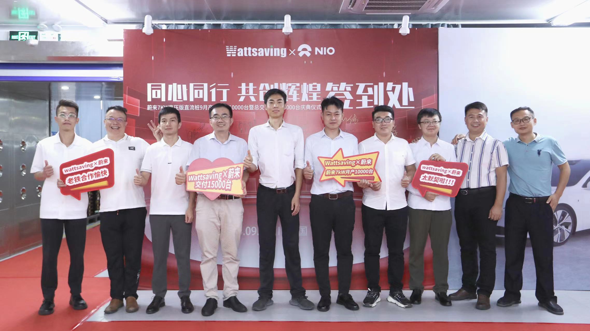 9月26日,在潔凈車間生產(chǎn)線機(jī)器轟隆的樂(lè)章中,能效電氣與蔚來(lái)汽車聯(lián)合舉行了“蔚來(lái)7kW高壓版直流樁月產(chǎn)能突破1萬(wàn)臺(tái)暨總交付達(dá)到1.5萬(wàn)臺(tái)”慶祝儀式。能效電氣團(tuán)隊(duì)與蔚來(lái)汽車團(tuán)隊(duì)約五十余人,共同見(jiàn)證歷史性時(shí)刻。